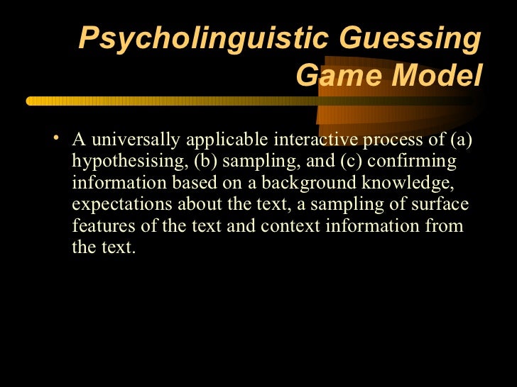 - 18. Psycholinguistic Guessing Game Model• A universally applicable interactive process of (a) hypothesising, (b) sampling, and (c) confirming information based on a background knowledge, expectations about the text, a sampling of surface features of the text and context information from the text.